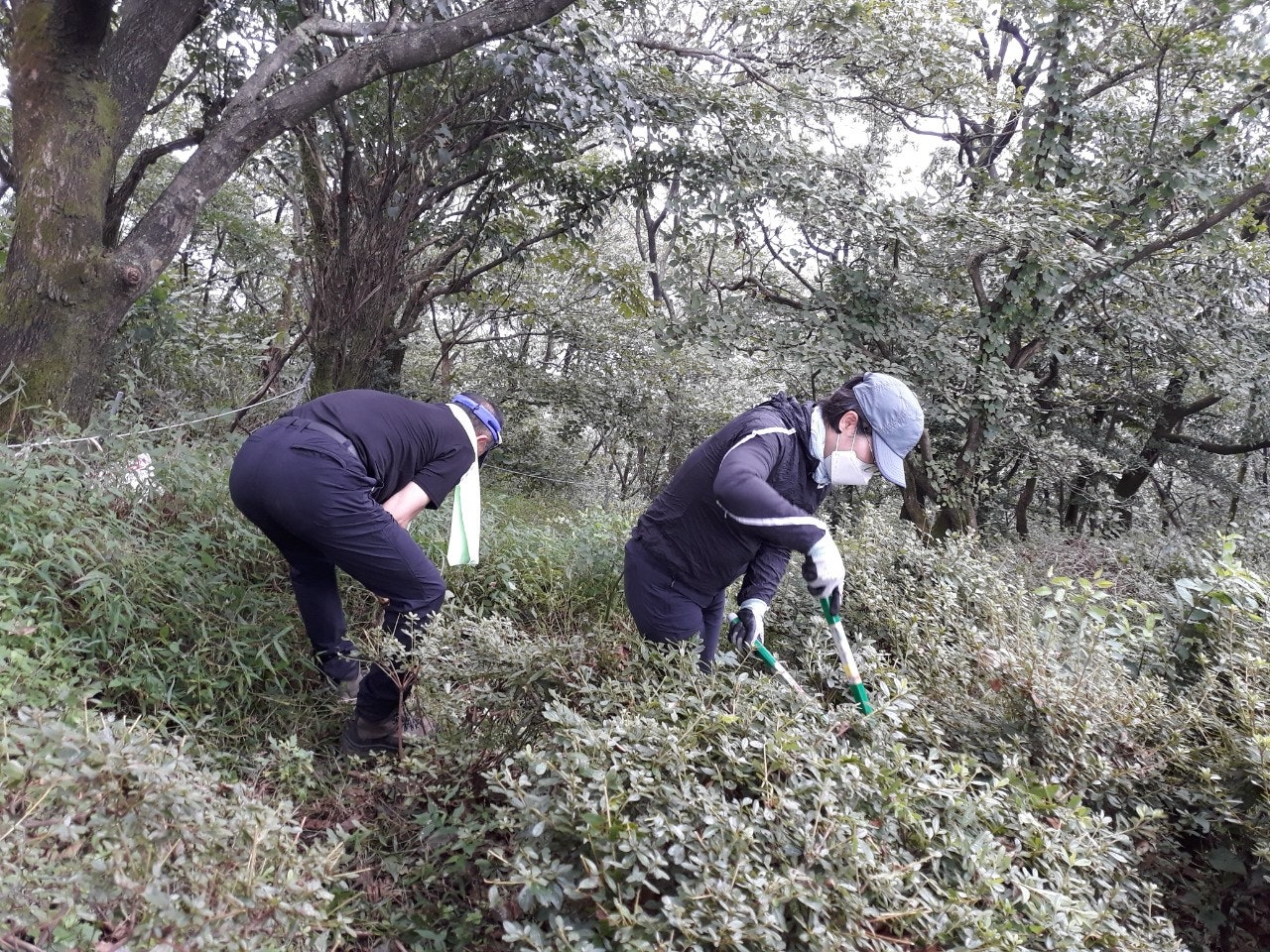 박사무국장님은 전지가위로 초소앞에