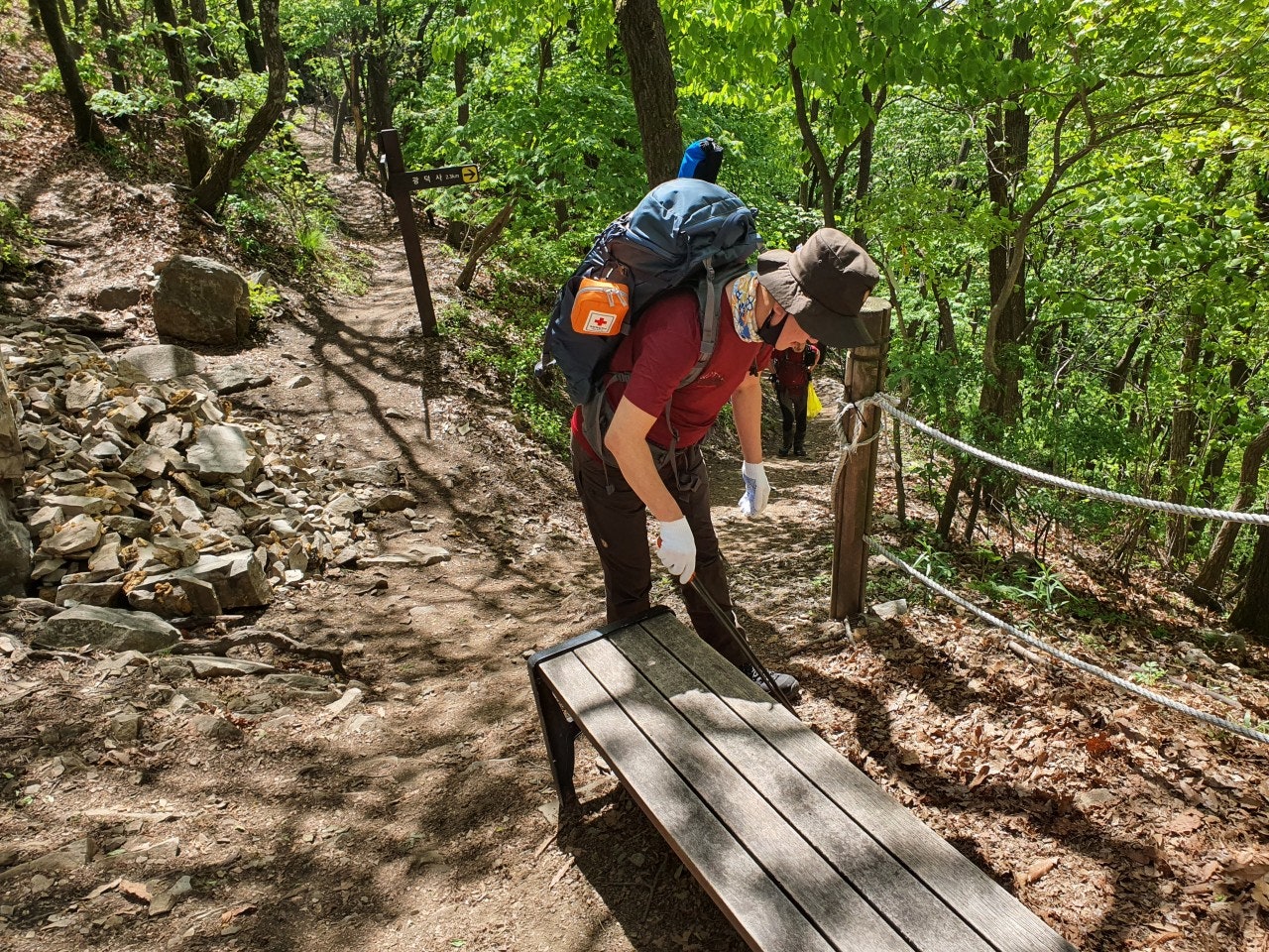 등산객 한분이 손가락 다쳐서 밴드 찾으시길래 간단한 응급처리도 해드렸으며 전난희대원님이 협찬해주신 많은 김밥 덕분에 초소로 점심 드시러 온 등산객분들께도 나눔하면서 맛나게 잘 먹었습니다...김밥 고마웠습니다...