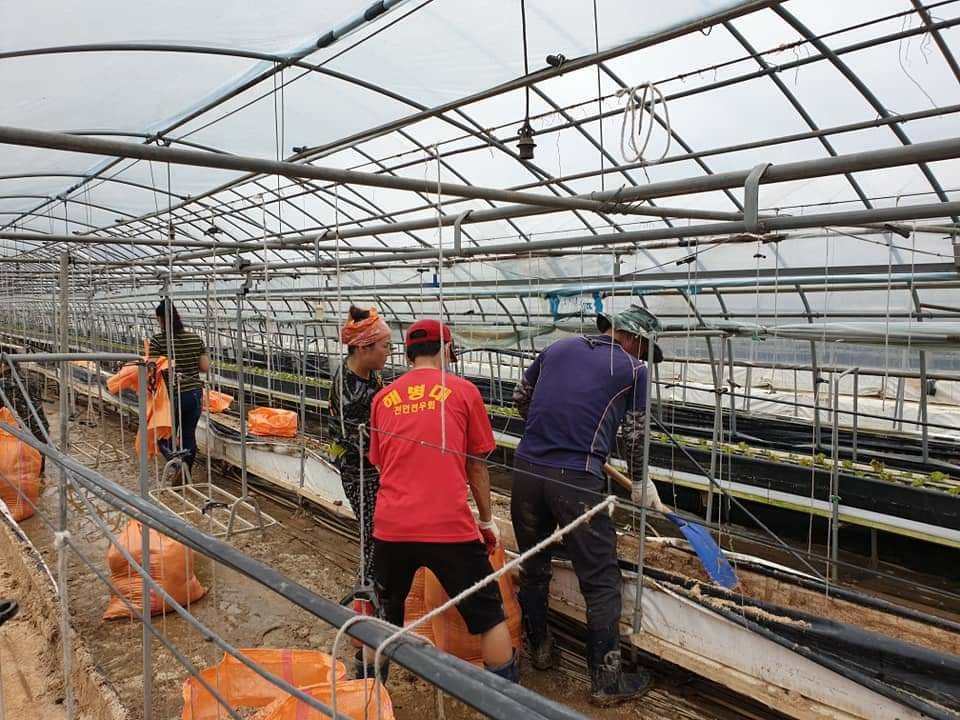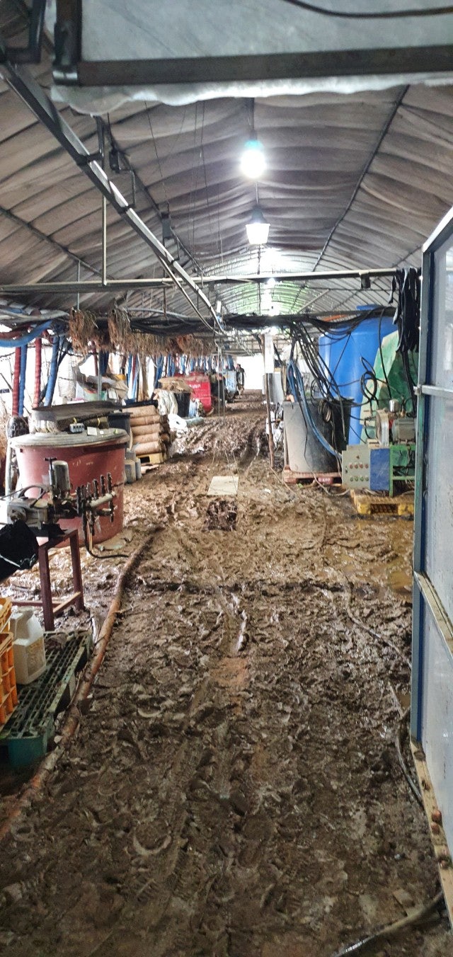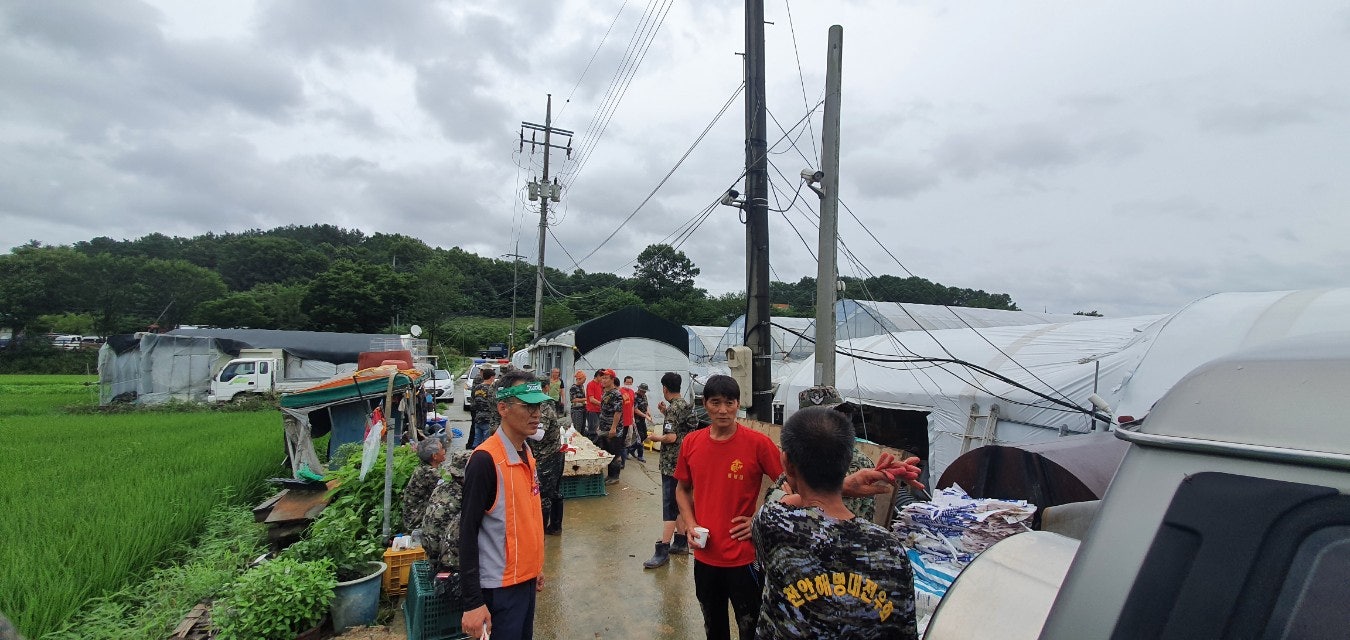 북면을 거슬러 올라가는 천이 넘쳐 비닐하우스를 덮친거네요.