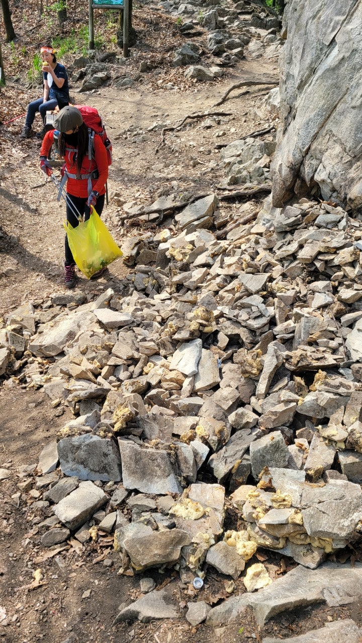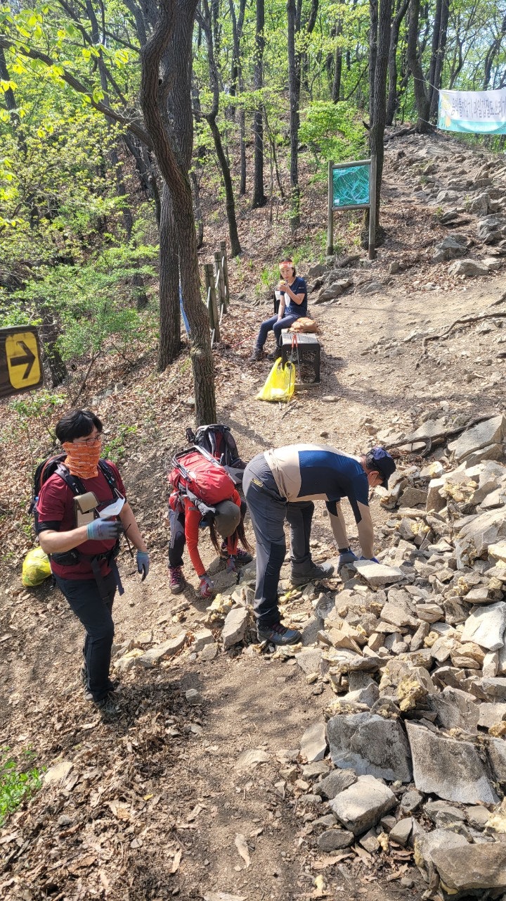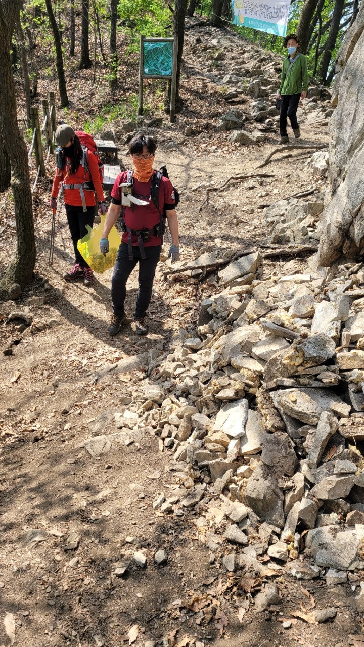 석류봉인근까지 정화활동 진행후 컵라면과 김밥으로 점심을